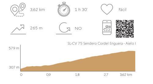 Els camins històrics, senderes, calçades o cordals unien pobles i valls, formant un entramat rural que va facilitar el desenvolupament i la comunicació entre comarques senceres. Aquest és el cas del Cordal d’Enguera a Aielo que permetia el pas de pastors, ramats i viatgers entre la Canal de Navarrés i la Vall d’Albaida, creuant la serra d’Enguera, la serra Grossa i la vall de Montesa. La nostra ruta, apta per a tot tipus de públic, proposa recórrer el tram entre el castell de Montesa fins al corral del campanillo, al límit amb el terme municipal d’Enguera.